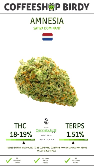 Amnesia delivers a powerful and uplifting high that stimulates the mind and energizes the body with its sativa-dominant effects. Its cerebral buzz induces a euphoric and creative mindset, perfect for tackling tasks and sparking inspiration. Meanwhile, its subtle indica influence provides a gentle relaxation that soothes the muscles and eases tension without inducing sedation.