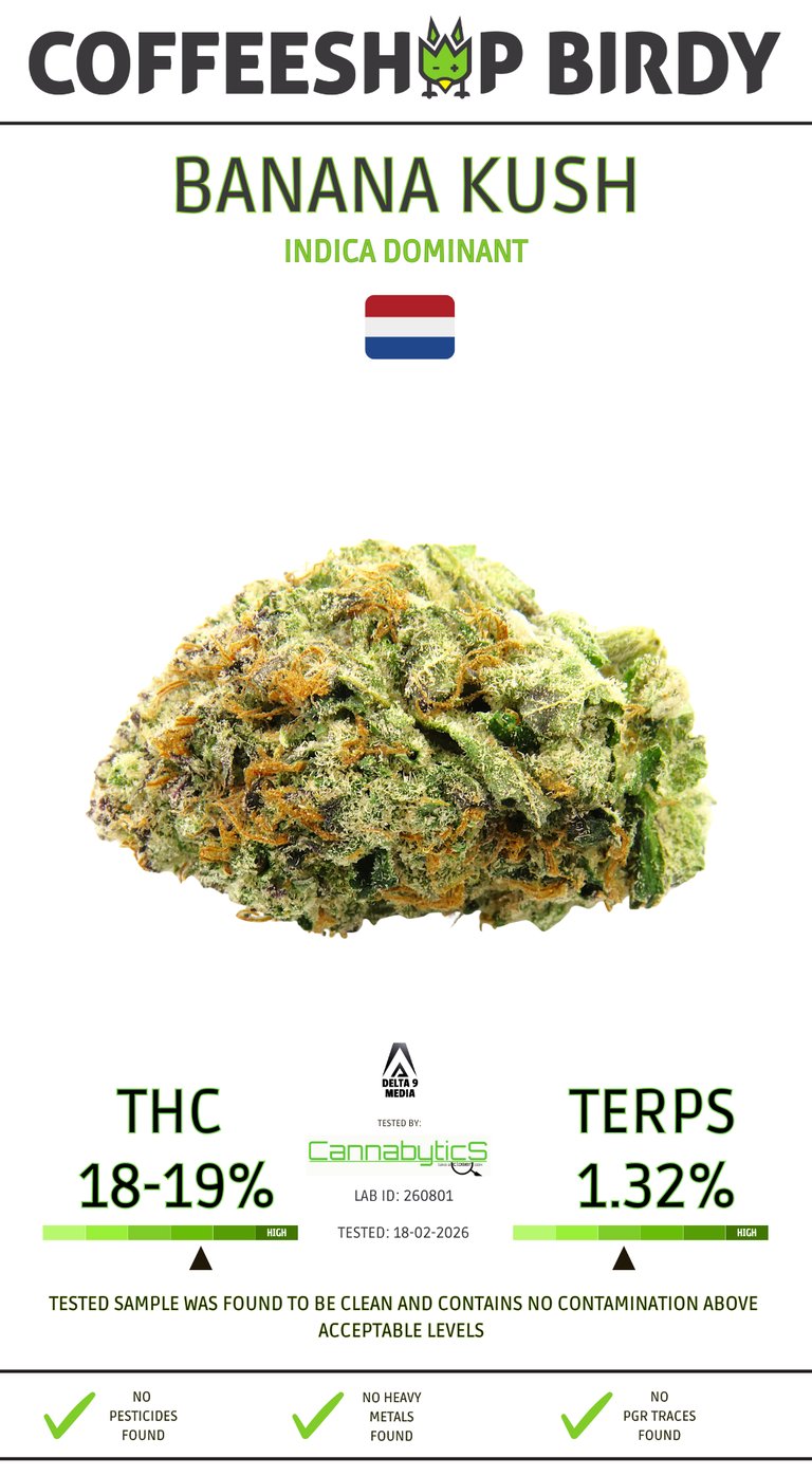 Banana Kush typically exhibits a soft, malleable texture, indicative of its freshness and quality. Its color ranges from light brown to dark amber, with a glossy sheen that hints at its sticky, resinous nature. The Weed is easily worked with, whether it's being smoked alone or mixed with flower.