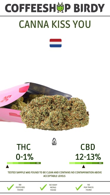 Canna Kiss You CBD is a CBD-dominant cannabis strain designed for smooth relaxation, emotional balance, and everyday usability. With a mild terpene profile and low psychoactivity, this strain targets users who prioritize calm, control, and consistency over intensity.