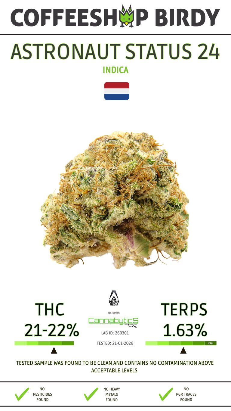 Astronaut Status 24 is a high-altitude strain designed for users who operate beyond baseline. Potent, precise, and immersive. Not entry-level—this is controlled intensity for those already cleared for launch.