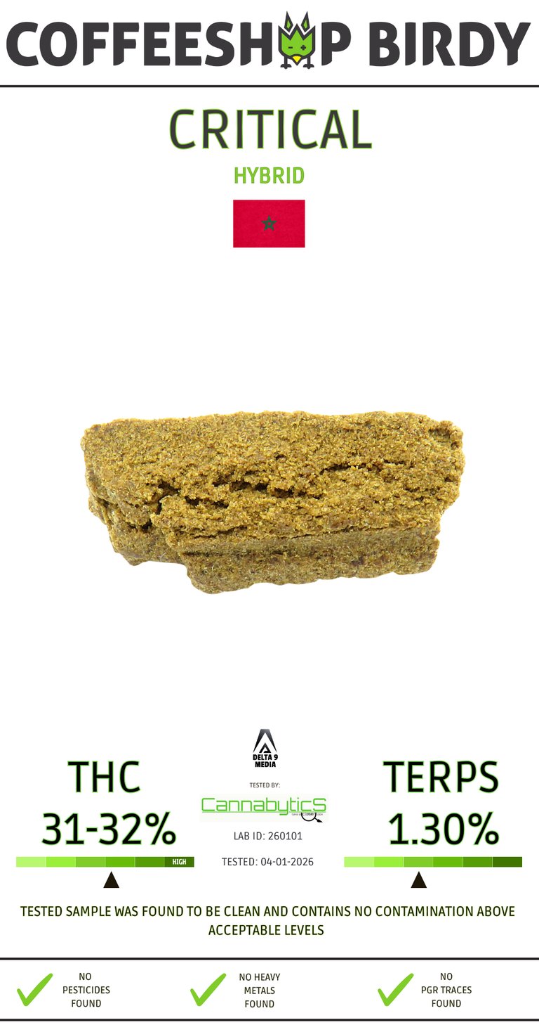 Critical offers a balanced effect profile. The onset is uplifting and mood-enhancing, followed by a steady body relaxation that reduces tension without mental fog. Functional, stable, and versatile—suitable for both daytime and evening use.