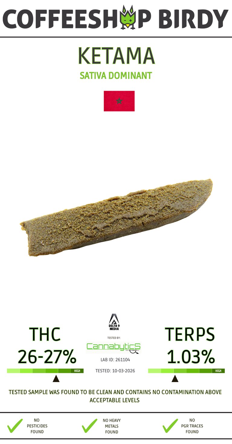 Ketama delivers a smooth, rich flavor profile. Expect deep earthy tones, mild spice, and a soft, hashy sweetness on the finish. The smoke is generally mellow and rounded, making it highly accessible and easy to consume repeatedly.